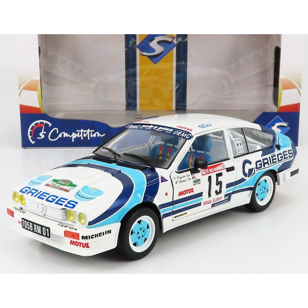 SOLIDO ALFA ROMEO ALFETTA GTV6 N 15 RALLY DES GARRIGUES 1986 C.RIGOLLET - M.BATHELOT - FEHÉR 2 TÓNUSÚ KÉK 1/18