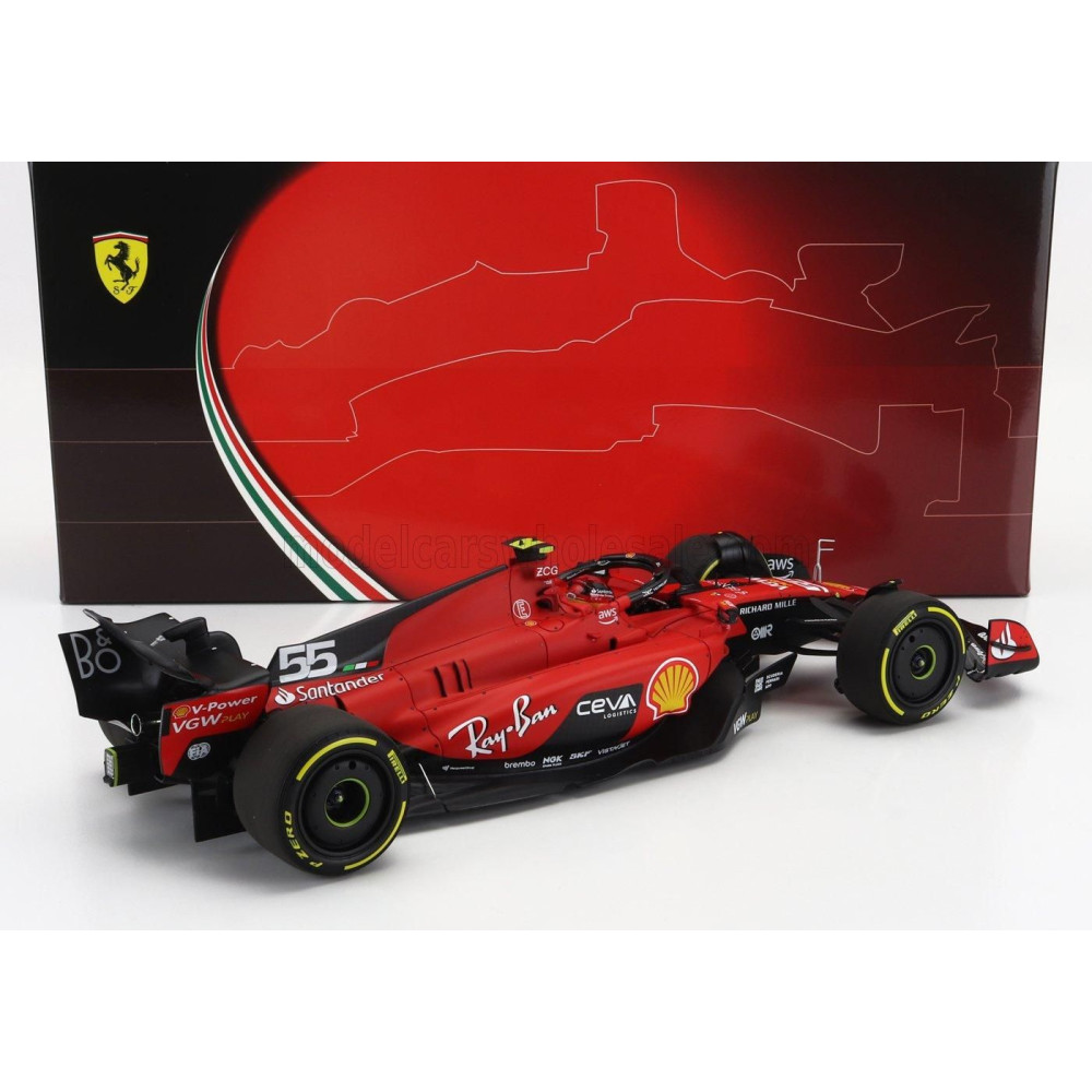 BBR MODELS FERRARI F1 SF-23 TEAM SCUDERIA FERRARI N 55 BELGIUM GP 2023 CARLOS SAINZ - PIROS FEKETE 1/18