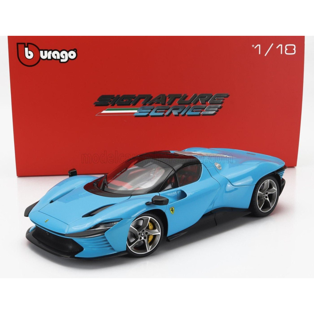 BURAGO FERRARI DAYTONA SP3 ZÁRT TETŐS 2022 - CON VETRINA - VITRINNEL - EXKLUZÍV CARMODEL - KÖZÉPKÉK 1/18
