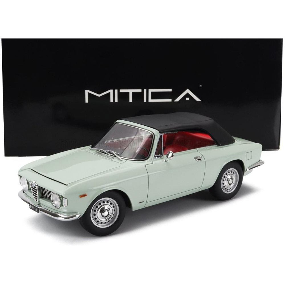 MITICA ALFA ROMEO GIULIA 1600 GTC CABRIOLET ZÁRVA 1964 – BELSŐ PIROS - AZZURRO SPAZIO - VILÁGOS KÉK 1/18