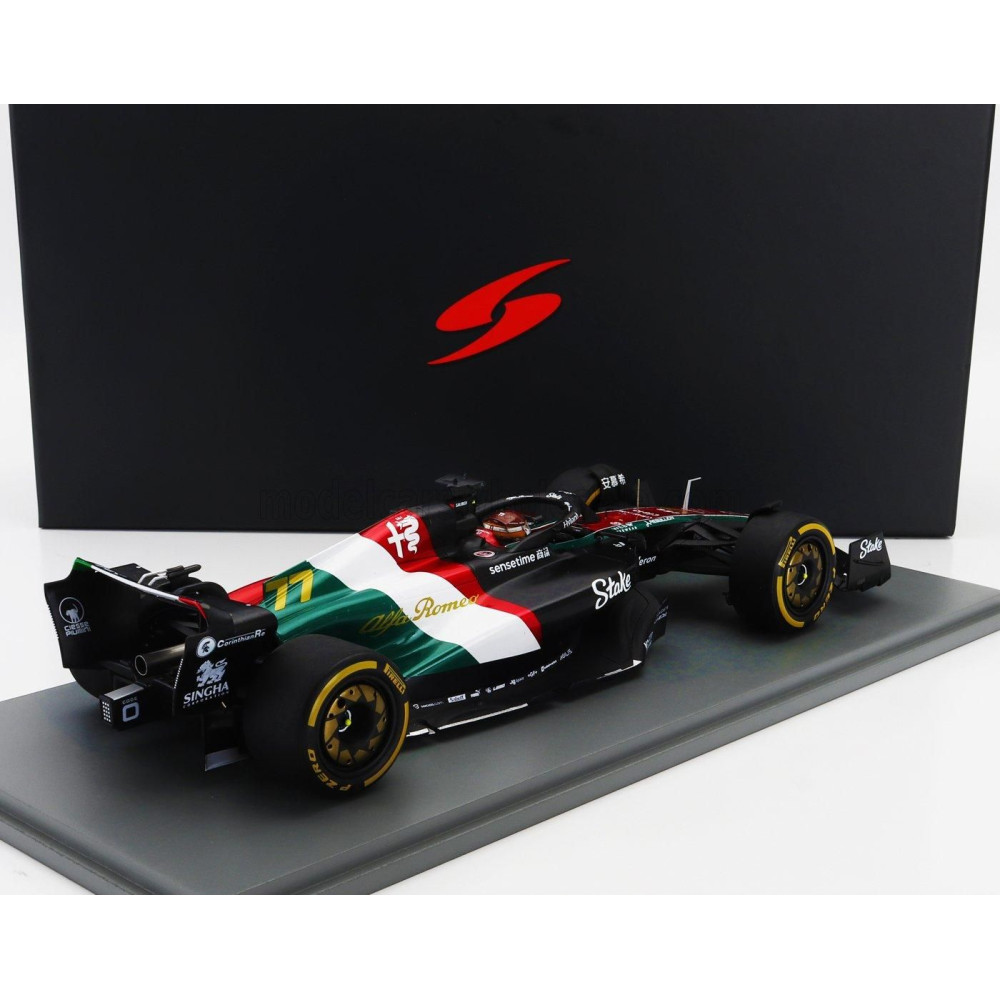 SPARK MODELL ALFA ROMEO F1 C43 TEAM STAKE N 77 MONZA OLASZORSZÁG GP 2023 VALTTERI BOTTAS - FEKETE PIROS FEHÉR ZÖLD 1/18