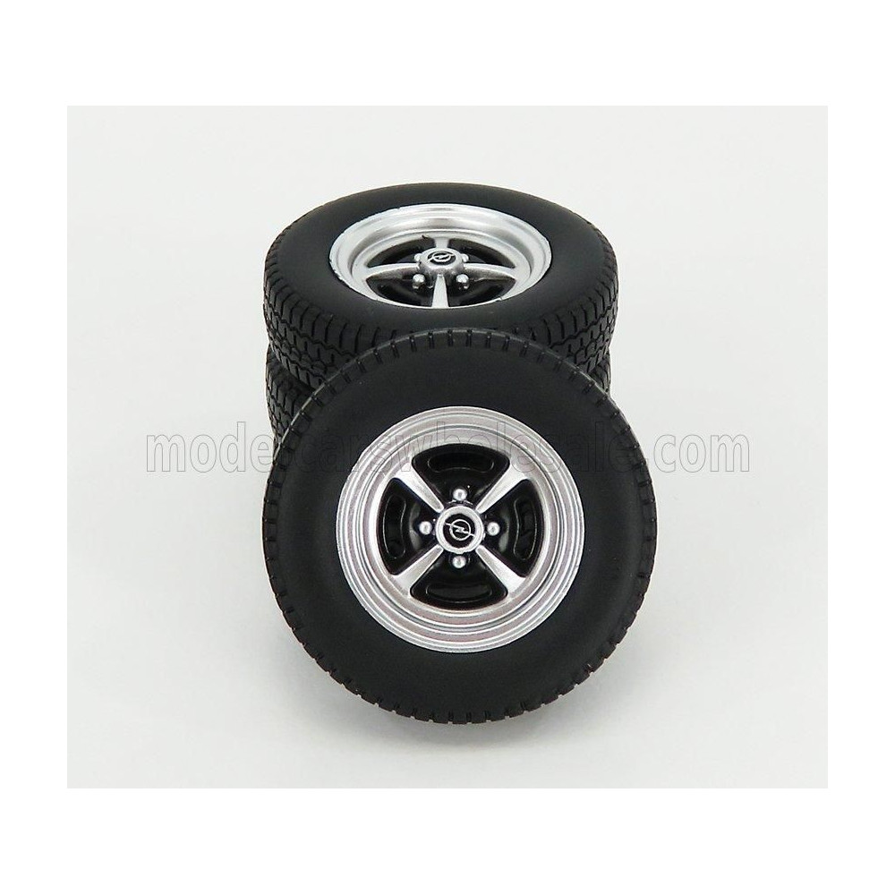 KK MÉRETARÁNYÚ KIEGÉSZÍTŐ KÉSZLET 4X FELNI ÉS GUMIABRONCS KÉSZLET - OPEL KADETT B SPORT 1973 - FEKETE 1/18