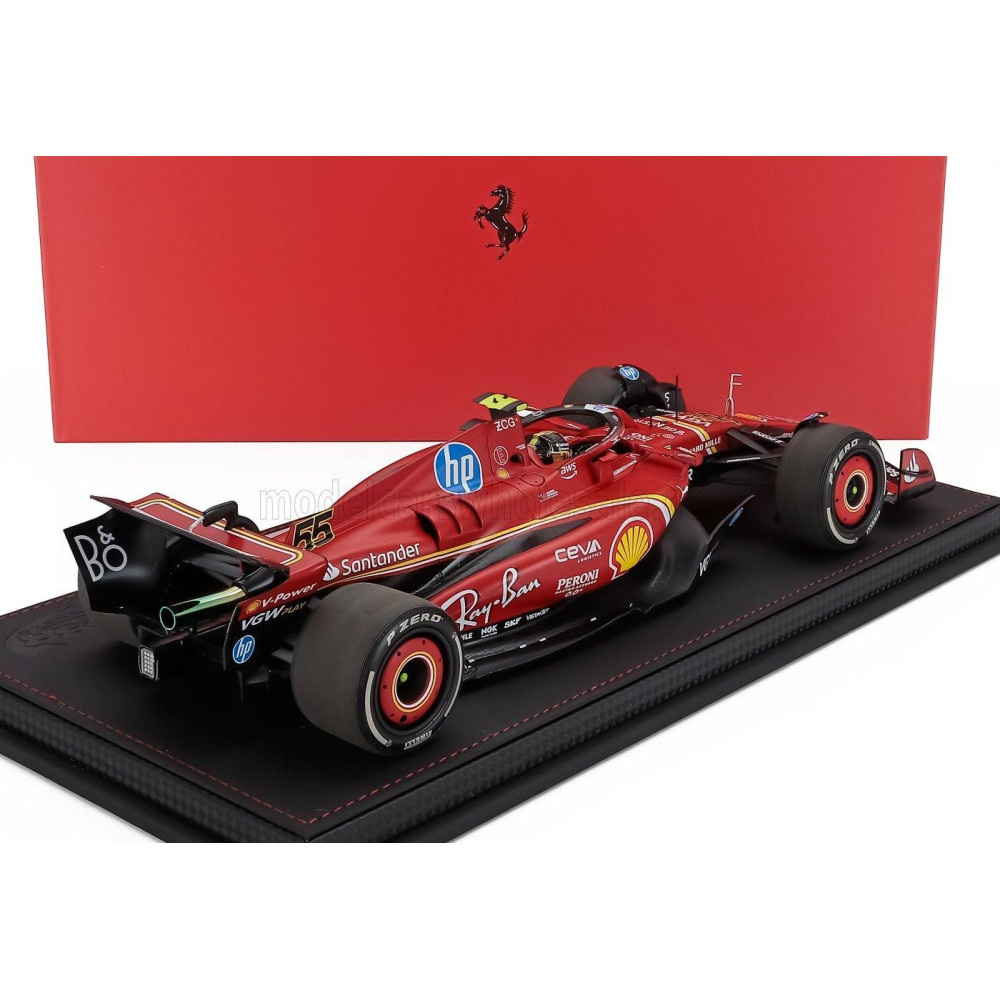BBR MODELLEK FERRARI F1 SF-24 TEAM SCUDERIA FERRARI N 55 MONZA OLASZORSZÁG GP 2024 CARLOS SAINZ - CON VETRINA - VITRINEL - PIROS