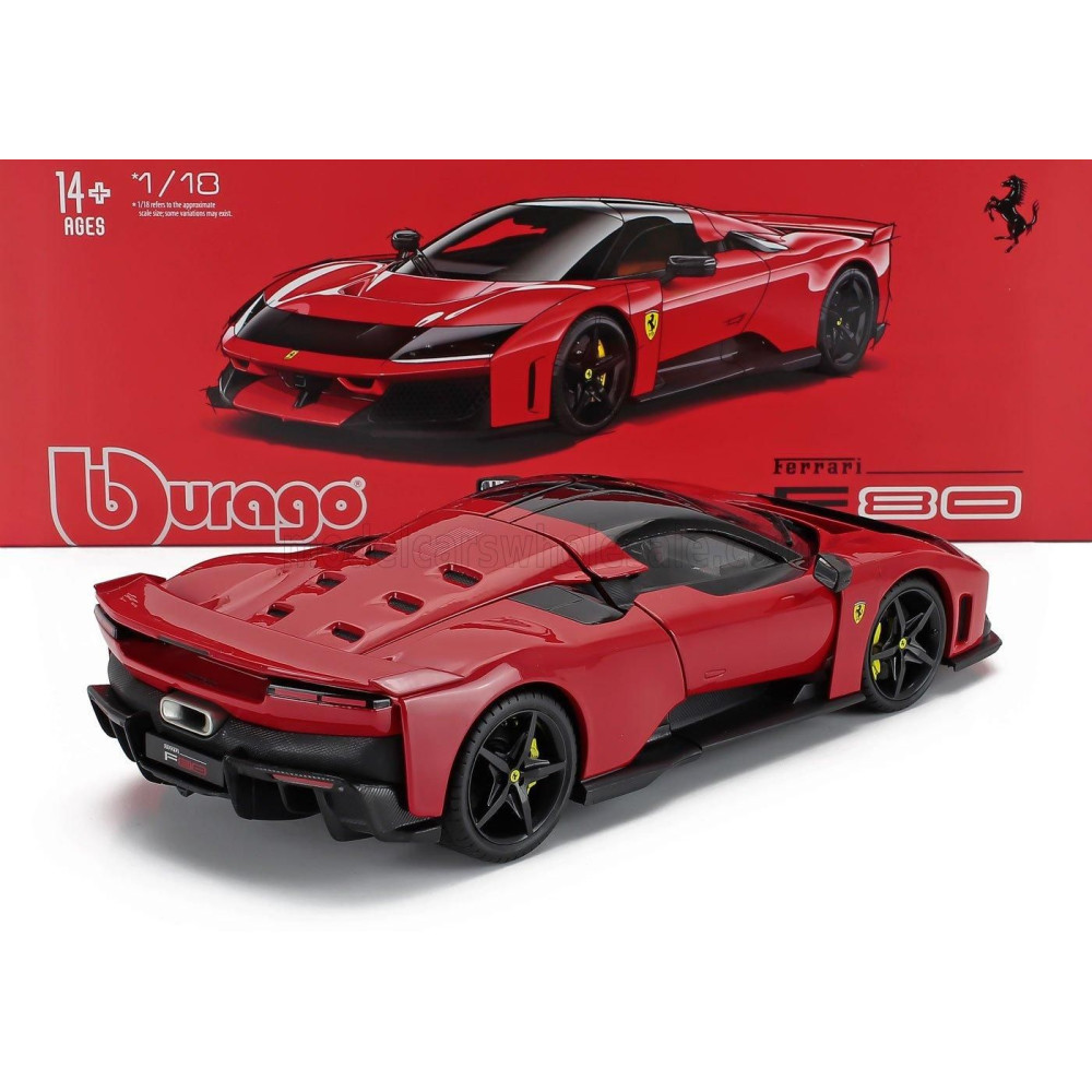 BURAGO FERRARI F80 2024 - FEKETE KEREKEK - ROSSO CORSA - PIROS 1/18