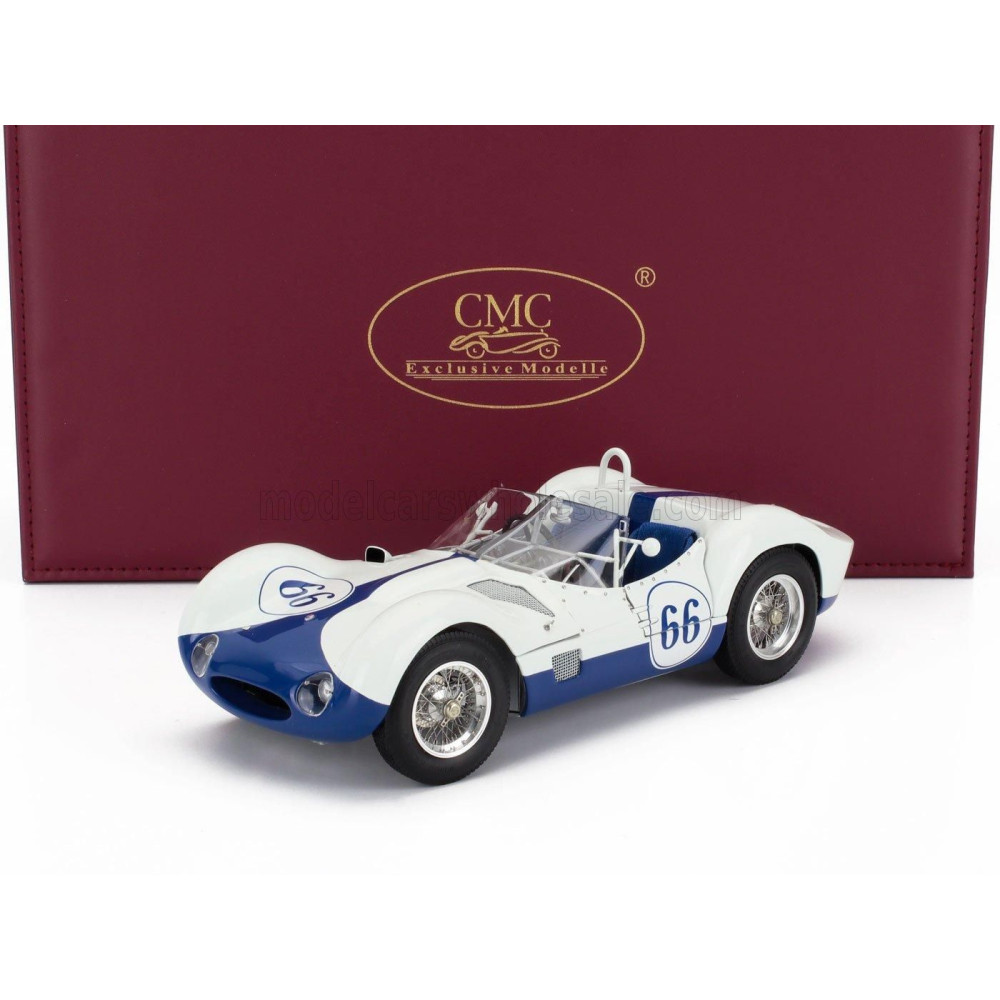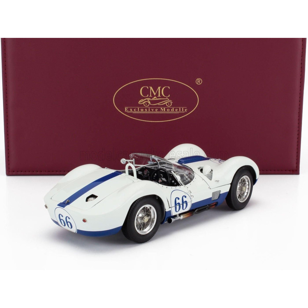 CMC MASERATI TIPO 61 2.9L S4 SPIDER BIRDCAGE N 66 WINNER CASTLE ROCK COLORADO SCCA 1960 JIM HALL - FEHÉR, KÉK 1/18