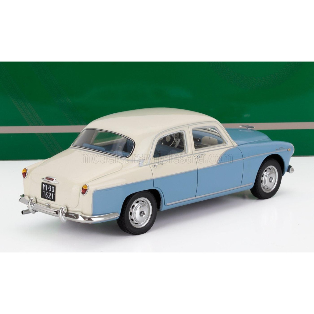 KULTUSZMÉRETARÁNYOS ALFA ROMEO 1900 SUPER BERLINA 1958 - VILÁGOS KÉK FEHÉR 1/18