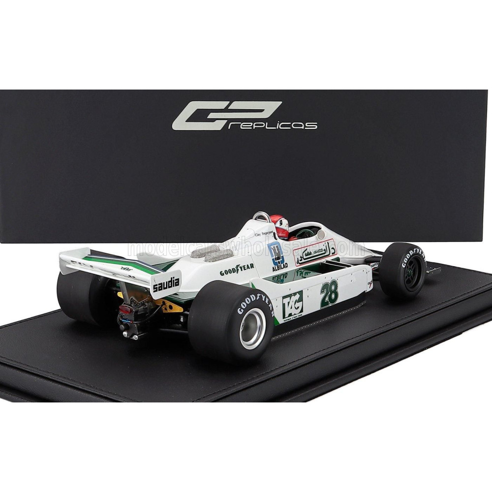 GP REPLICAS WILLIAMS F1 FW07 FORD N 28 BRIT GP GYŐZTES (pilóta figurával) 1979 CLAY REGAZZONI - FEHÉR ZÖLD 1/18