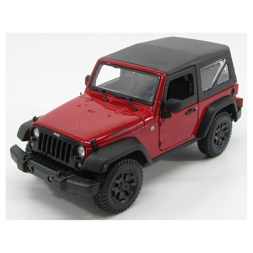 MAISTO JEEP WRANGLER WILLYS PUHA TETŐS 2014 - PIROS FEKETE 1/18