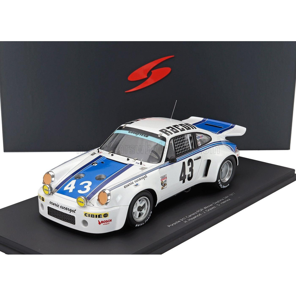 SPARK MODELL PORSCHE 911 CARRERA RSR CSAPAT ECURIE ESCARGOT N 43 24 órás DAYTONA 1977 GYŐZTES HURLEY HAYWOOD - JOHN GRAVES - DAV