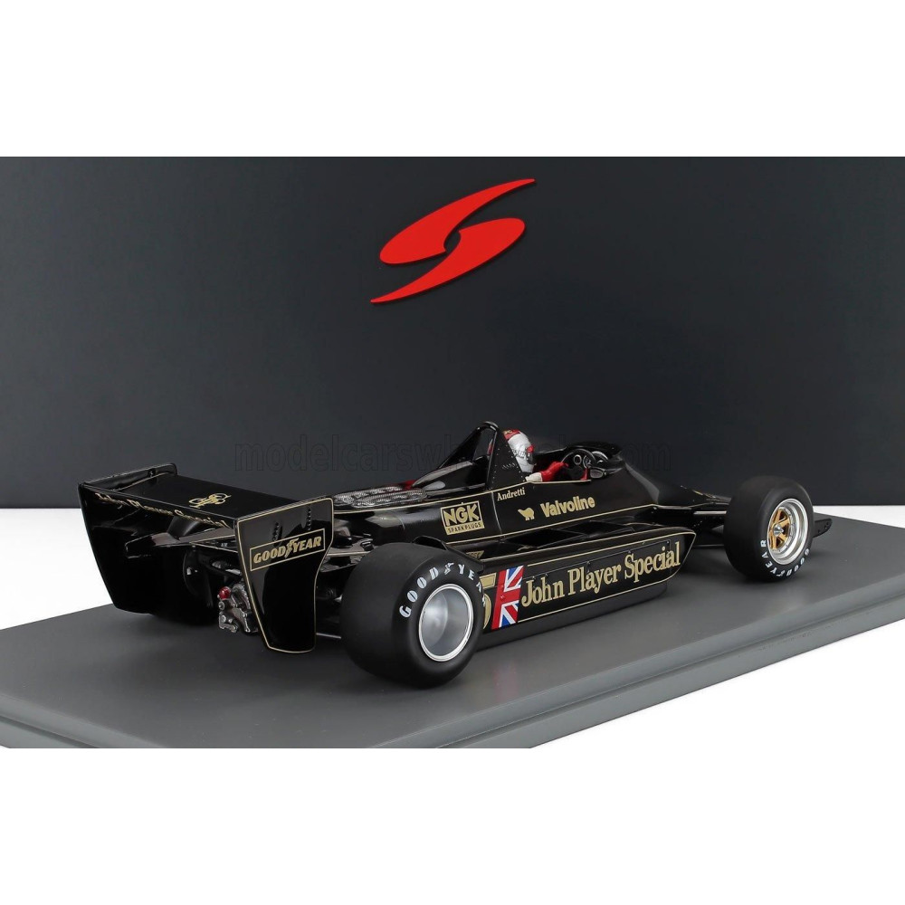 SPARK MODELL LOTUS F1 79 JPS N 5 VILÁGBAJNOK GYŐZTES BELGA GP MARIO ANDRETTI 1978 - FEKETE ARANY 1/18