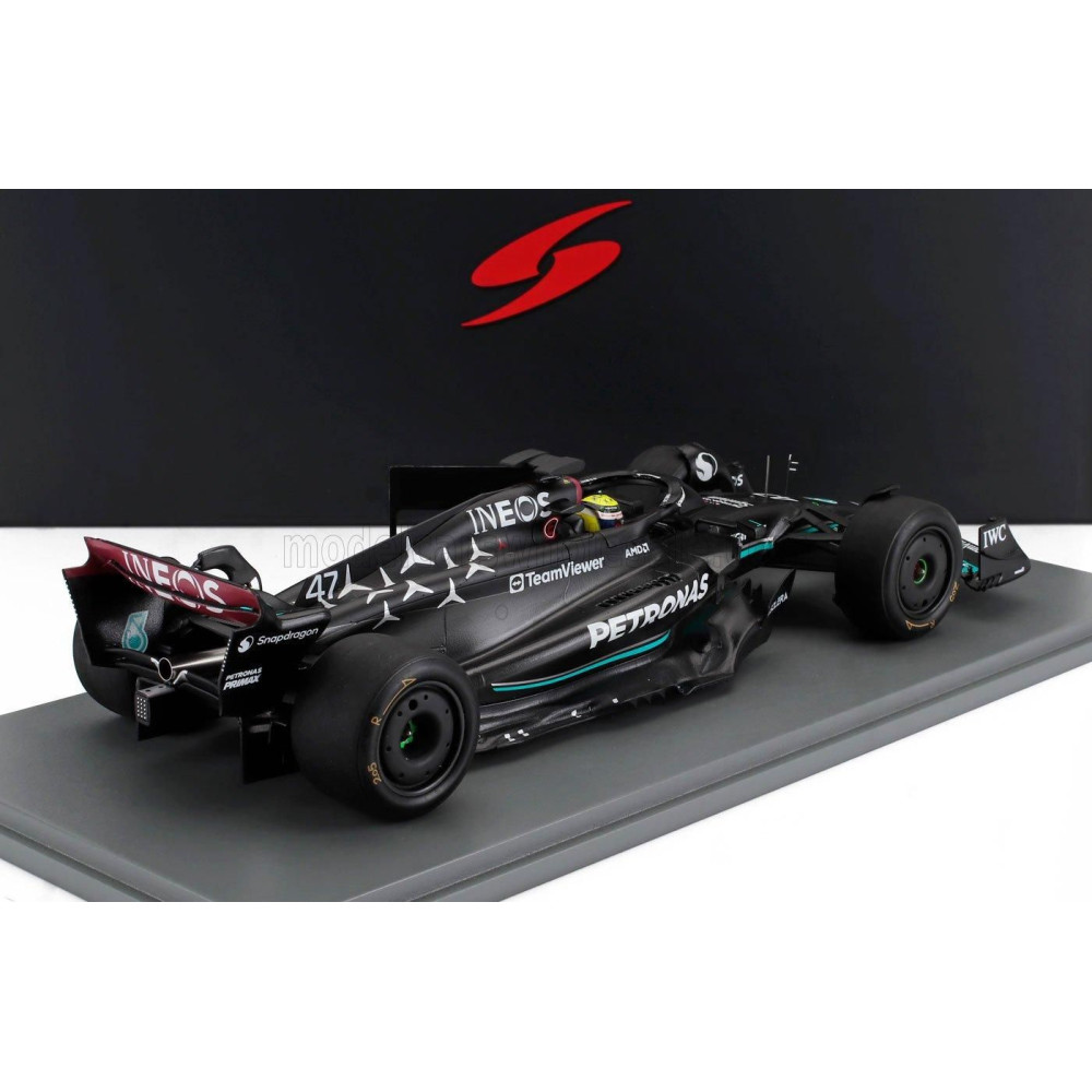 SPARK MODELL MERCEDES GP F1 W14 CSAPAT MERCEDES-AMG PETRONAS FORMULA ONE N 47 GUMIABRONCS TESZT SPANYOLORSZÁG GP 2023 MICK SCHUM