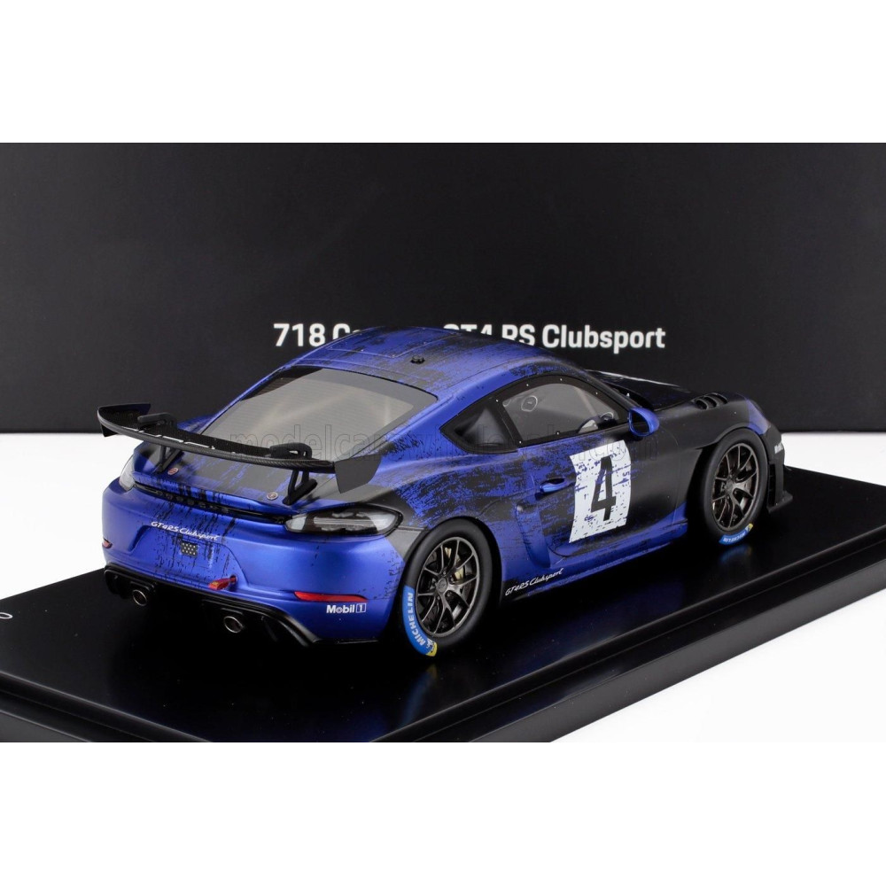 SPARK MODELL PORSCHE 718 (982) CAYMAN GT4 RS N 4 CLUBSPORT 2023 - VETRINA KIEGÉSZÍTŐVEL - VITRINNEL - KÉK FEKETE 1/18