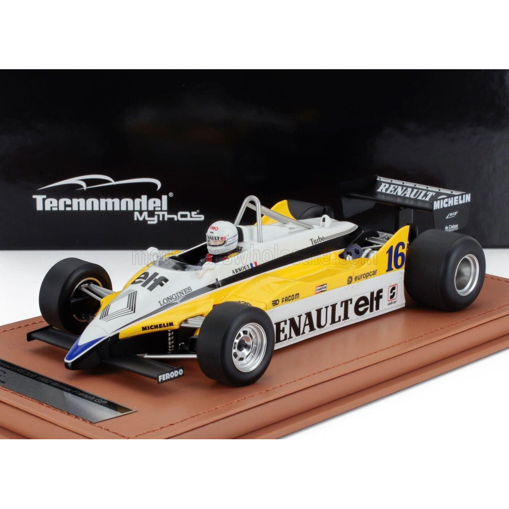 TECNOMODEL RENAULT F1 RE30B V6 TURBO CSAPAT RENAULT ELF N 16 FRANCIA GP GYŐZTES (pilóta figurával) 1982 RENE ARNOUX - FEHÉR SÁRG