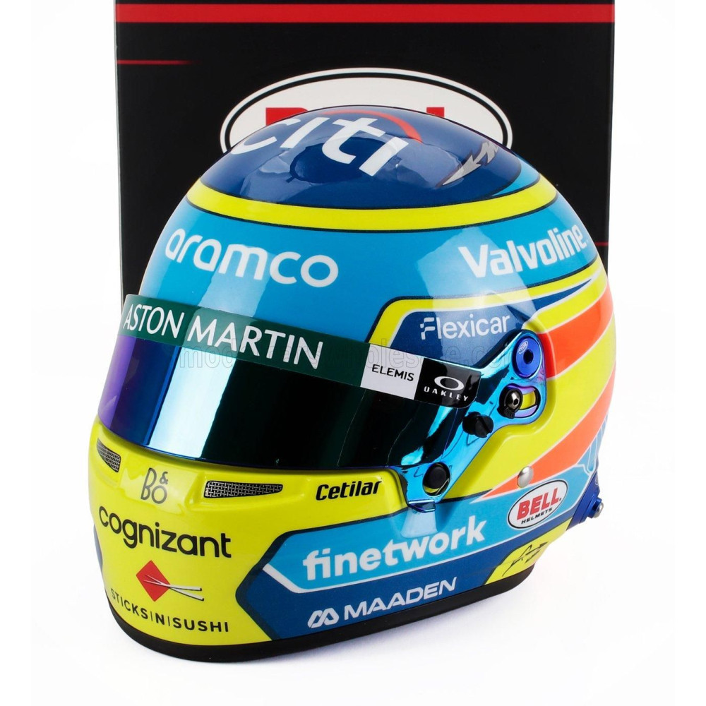MINI BUKÓSISAK BELL BUKÓSISAK CASCO BUKÓSISAK F1 FERNANDO ALONSO CSAPAT ASTON MARTIN ARAMCO N 14 SZEZON 2025 - SÁRGA KÉK 1/2