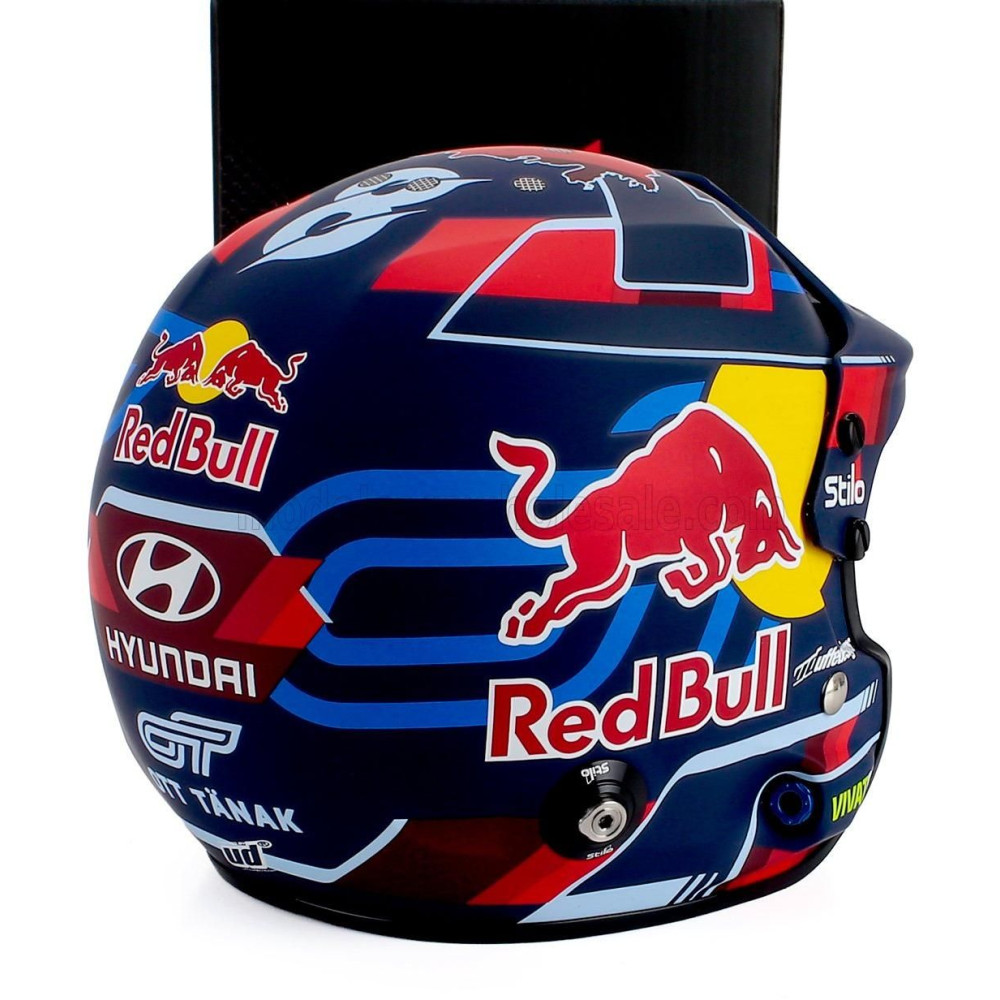 MINI STILO CASCO BUKÓSISISAK F1 OTT TANAK TEAM HYUNDAI i20 N RALLY1 SHELL MOBIS WRT RALLY SZEZON 2024 - KÉK PIROS SÁRGA 1/2