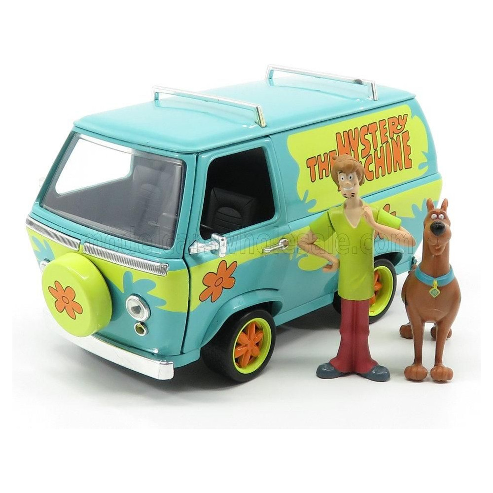 JADA HANNA BARBERA SCOOBY-DOO A TITOKZATOS FURGON GÉPEZET SHAGGY ÉS SCOOBY-DOO FIGURÁKKAL - VILÁGOSKÉK SÁRGA 1/24