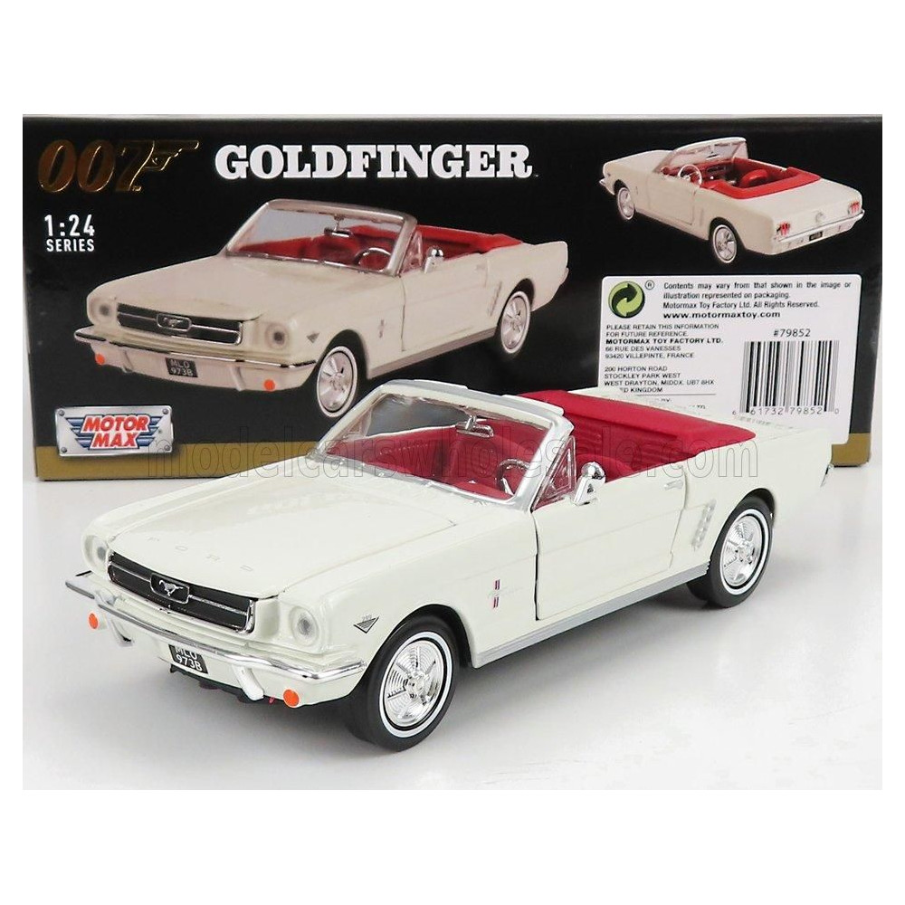 MOTOR MAX FORD USA MUSTANG CABRIOLET OPEN 1964 - JAMES BOND 007 - ARANYUJJ - MISSIONE GOLDFINGER - FEHÉR 1/24