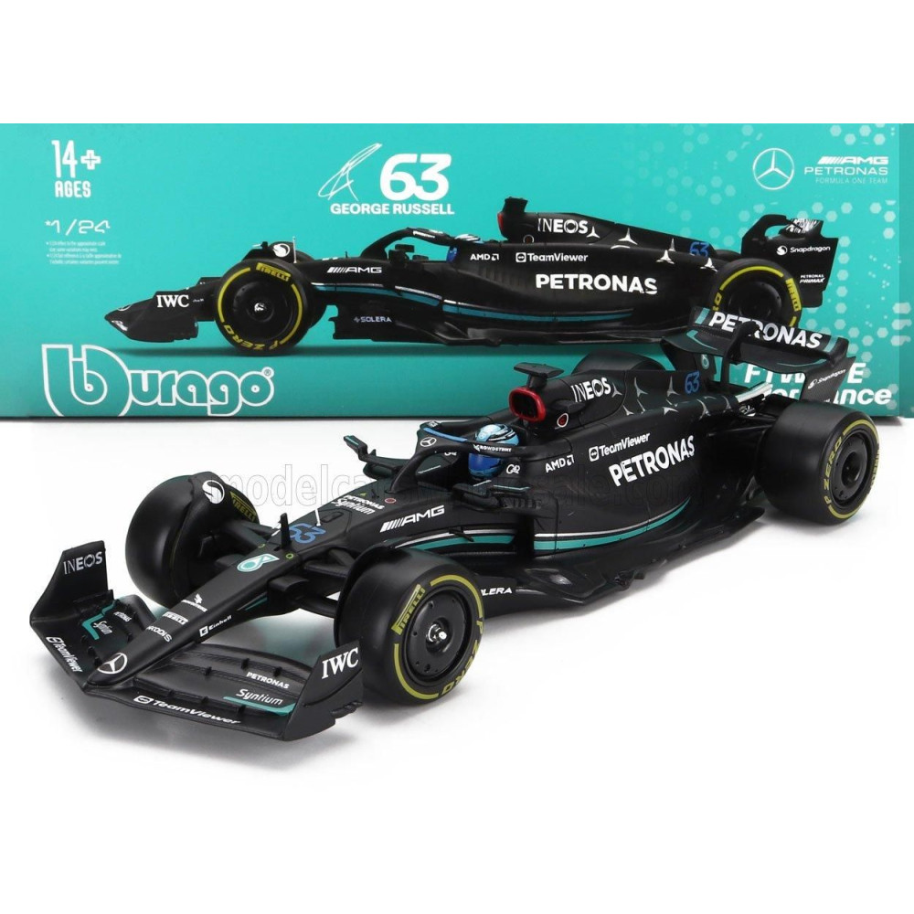 BURAGO MERCEDES GP F1 W14 CSAPAT MERCEDES-AMG PETRONAS FORMULA ONE N 63 2023-AS SZEZON GEORGE RUSSELL - PILÓTÁVAL ÉS BEMUTATÓVAL