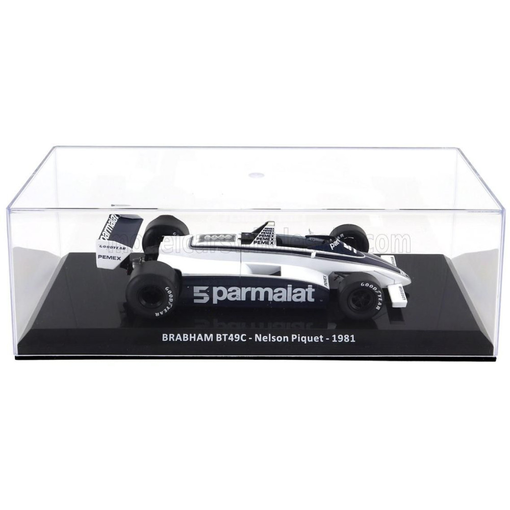 EDICOLA BRABHAM F1 BT49C PARMALAT RACING TEAM N 5 VILÁGBAJNOK 1981-ES ÉVAD NELSON PIQUET - CON VETRINA - VITRINNEL - FEHÉR