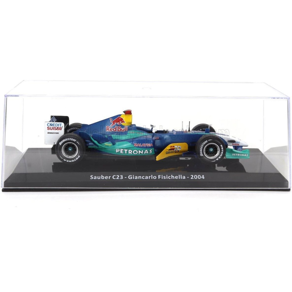 EDICOLA SAUBER F1 C23 PETRONAS N 11 SZEZON 2004 GIANCARLO FISICHELLA - CON VETRINA - VITRINEL - KÉK ZÖLD 1/24