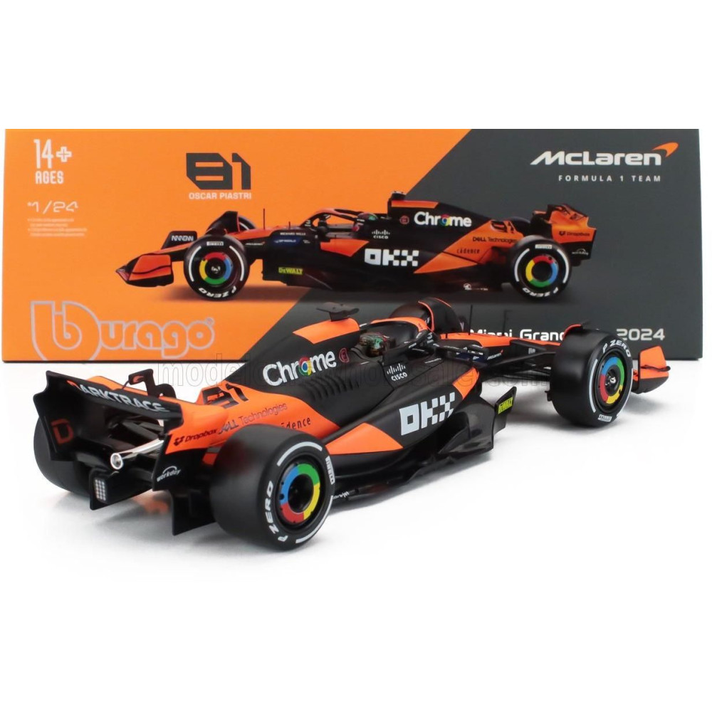 BURAGO McLaren F1 MCL38 TEAM MCLAREN N 81 MIAMI GP 2024 OSCAR PIASTRI - PILOTT ÉS BEMUTATÓ - NARANCS FEKETE 1/24