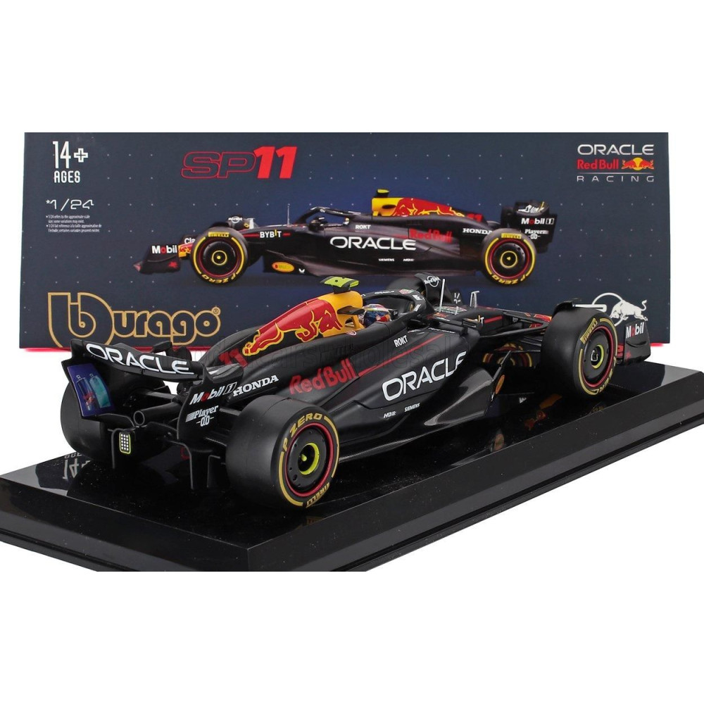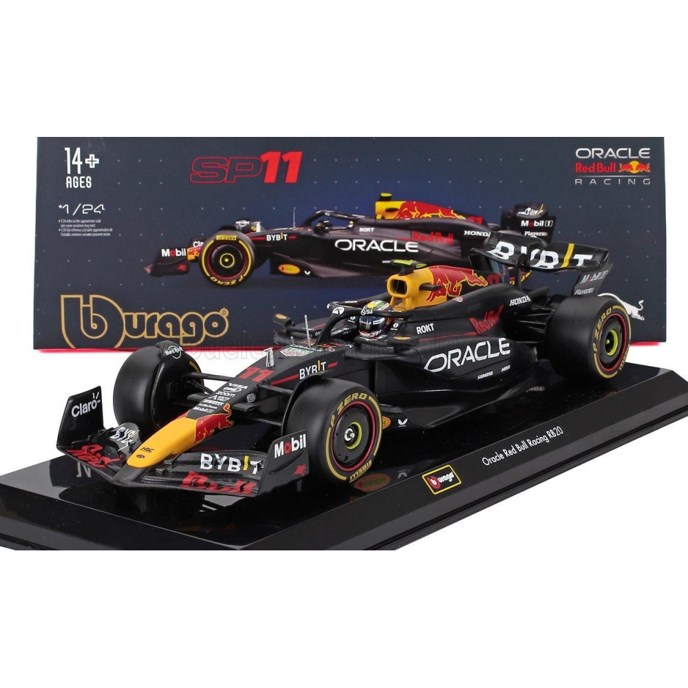 BURAGO RED BULL F1 RB20 TEAM ORACLE RED BULL RACING N 11 SZEZON 2024 SERGIO PEREZ - PILÓTÁVAL ÉS BEMUTATÓVAL - KÉK SÁRGA PIROS 1