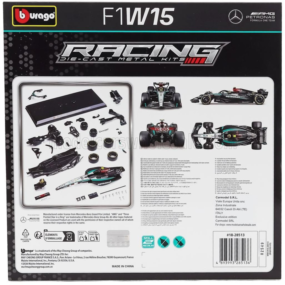 BURAGO MERCEDES GP F1 W15 EQ PERFORMANCE TEAM AMG PETRONAS MOTORSPORT N 44 2024-ES ÉVAD LEWIS HAMILTON - FEKETE EZÜST ZÖLD 1/24