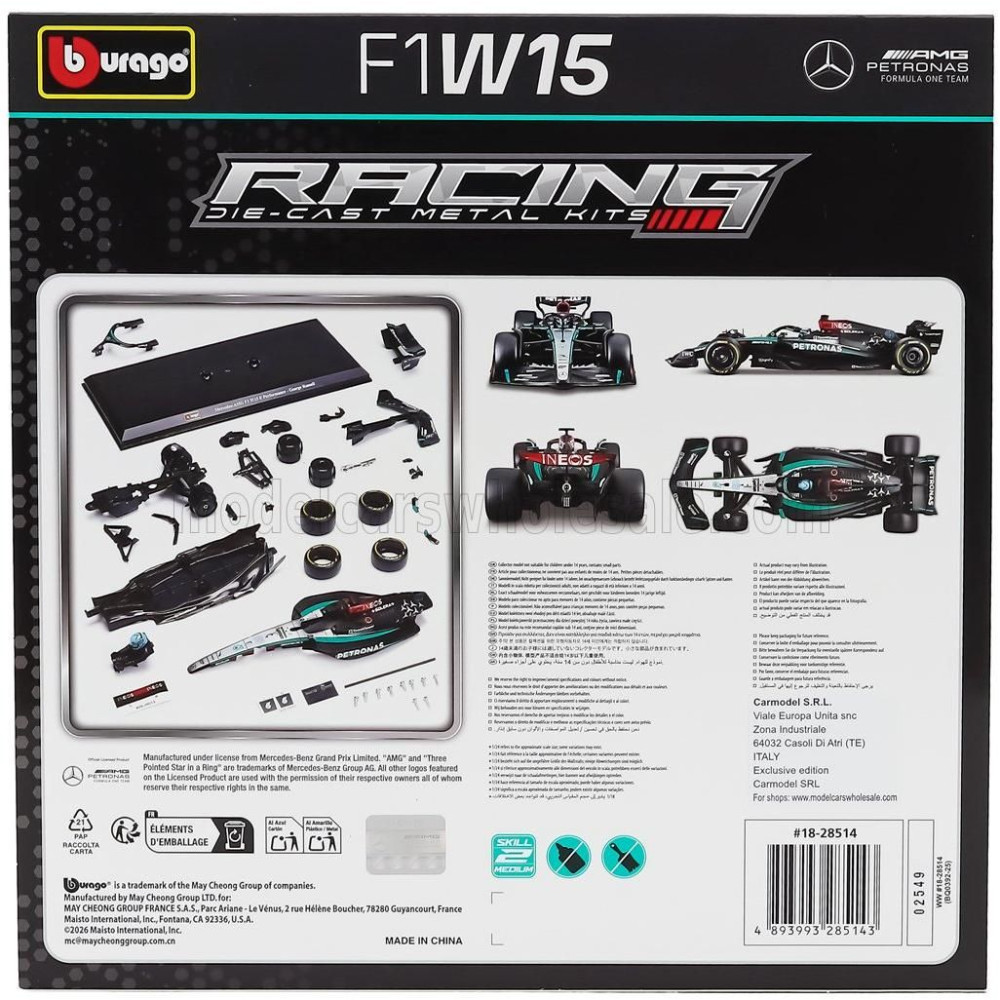 BURAGO MERCEDES GP F1 W15 EQ PERFORMANCE TEAM AMG PETRONAS MOTORSPORT N 63 2024-ES SZEZON GEORGE RUSSELL - FEKETE EZÜST ZÖLD 1/2