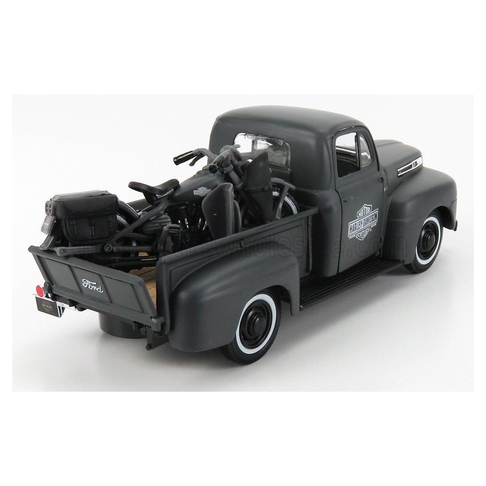 MAISTO FORD USA F-1 PICK-UP EGYEDI USA HARLEY-DAVIDSON 1948 + MOTORKERÉKPÁR HARLEY DAVIDSON WLA FLATHEAD 1942 - MATT SZÜRKE 1/24