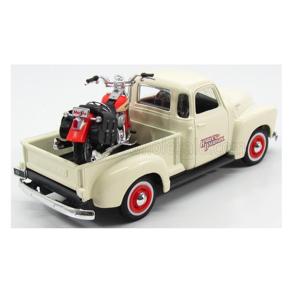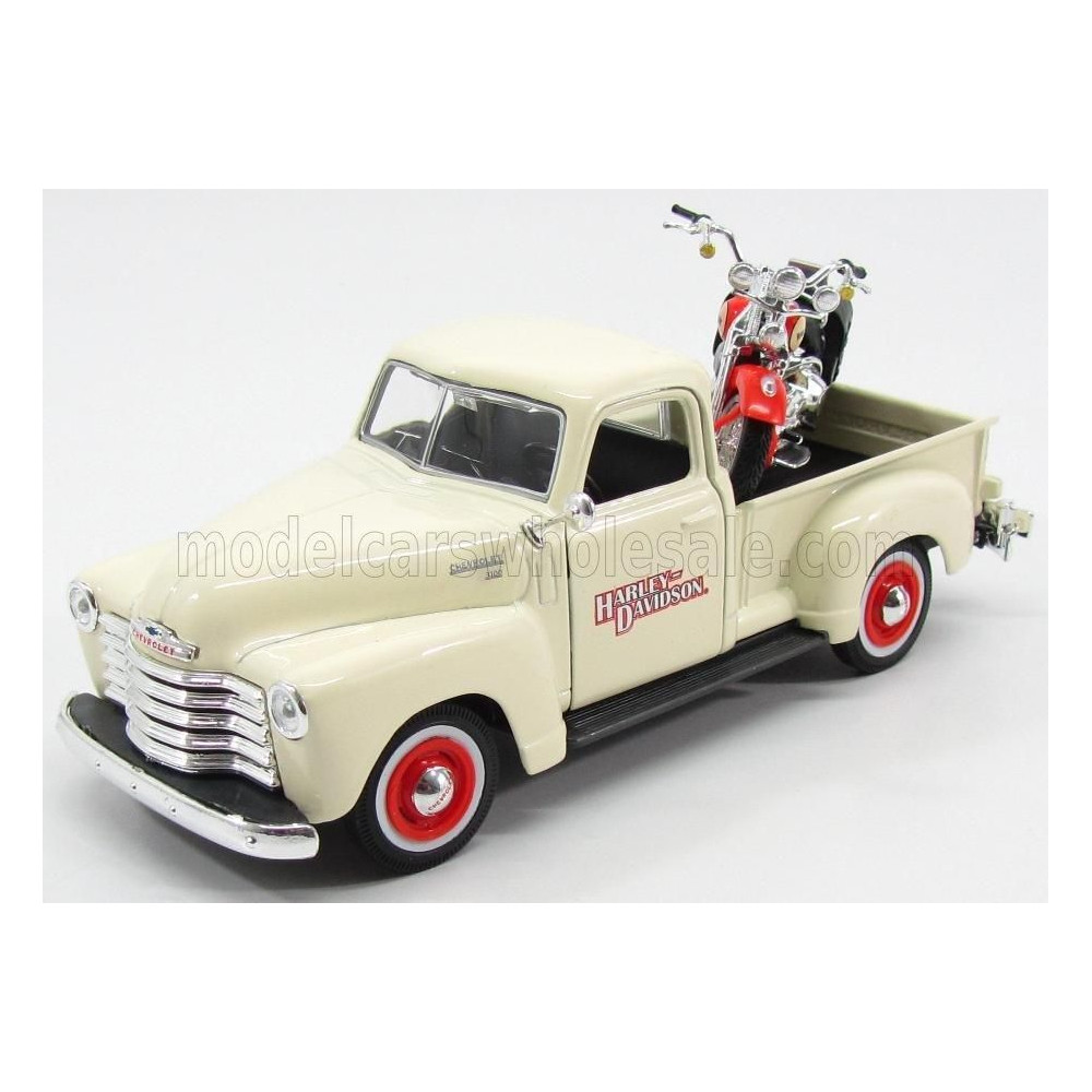 MAISTO CHEVROLET 3100 PICK-UP 1950 + MOTORKERÉKPÁR HARLEY DAVIDSON FLSTS HERITAGE SPRINGER 2001 - ELEFÁNTCSONT 1/24