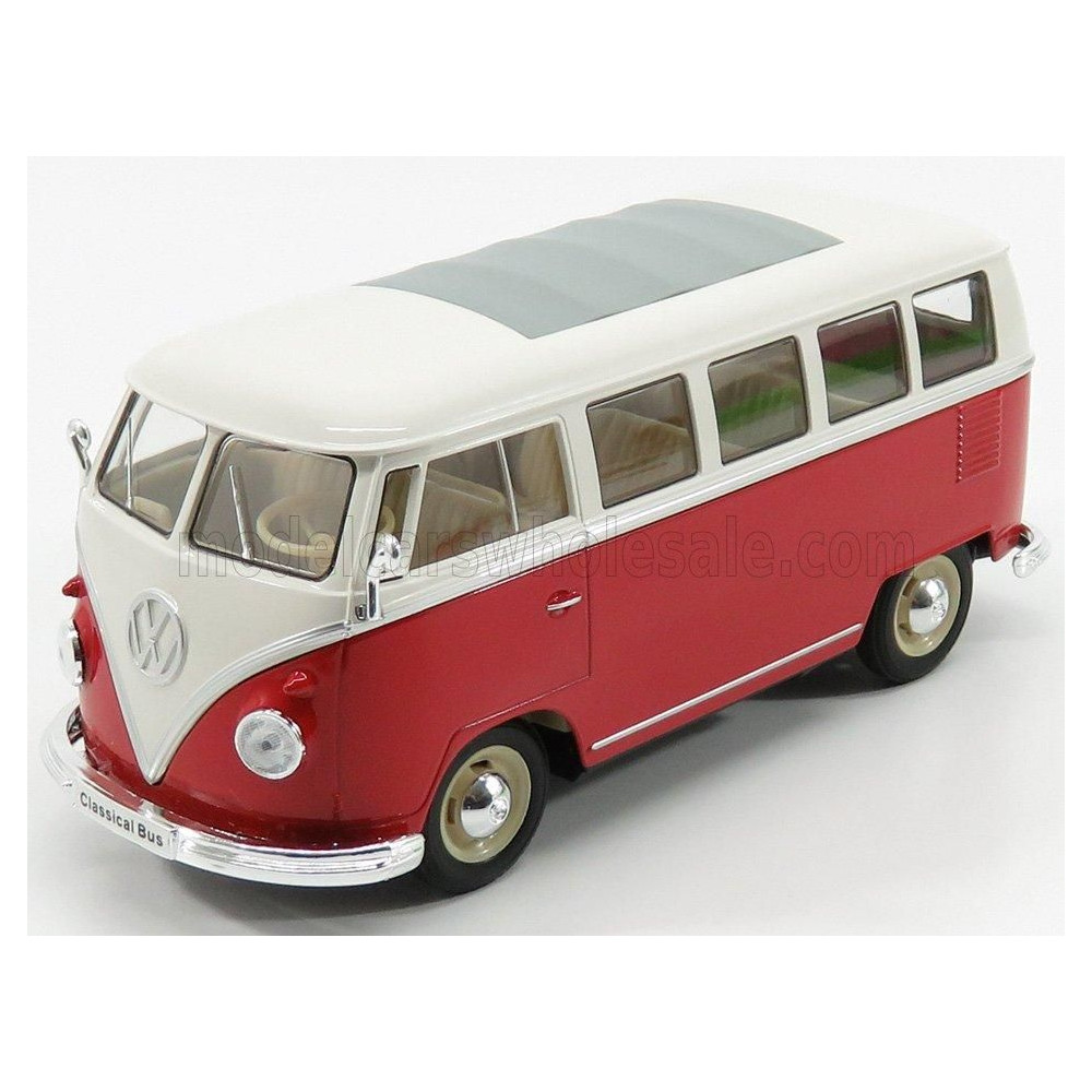 WELLY VOLKSWAGEN T1 KISBUSZ 1962 - PIROS-FEHÉR 1/24