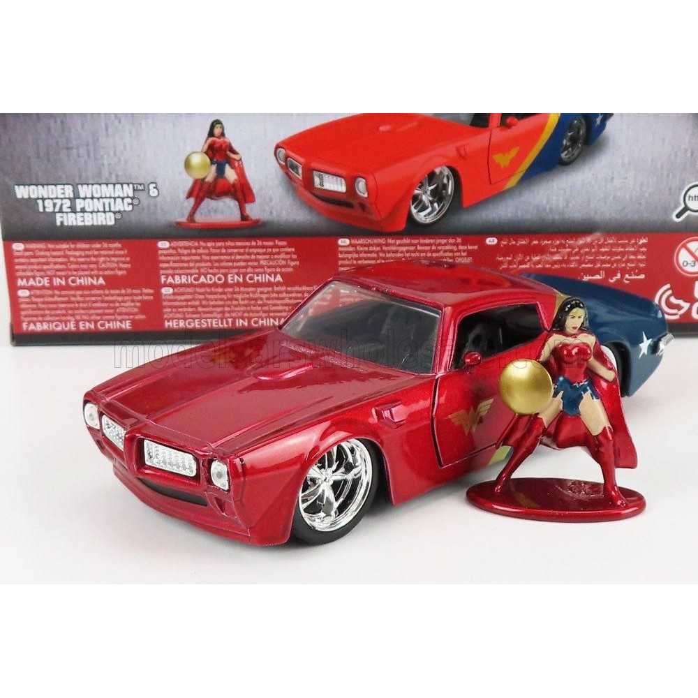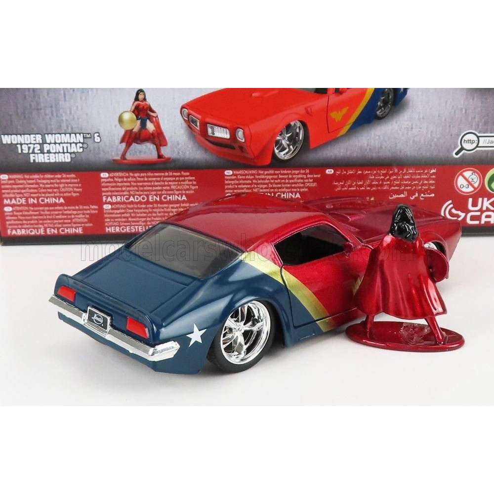 A JADA Pontiac Firebird with Wonder Woman figure 1972 egy lenyűgöző második generációs történelmi járműmodell, melyet a JADA Toys tervezett és készített. Ez a csodálatos 1/32 méretarányú modellautó hűen megidézi a valódi Pontiac Firebird autó megjelenését, csak kicsinyítve.