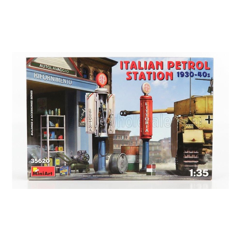 MINIART DIORAMA GARAGE STAZIONE DI SERVIZIO - ITALIAN PETROL STATION 1930-40-es évek 1/35