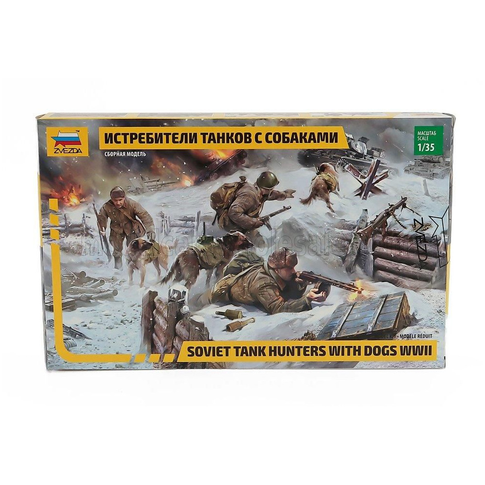 ZVEZDA FIGURA SZOVJET TANKVADÁSZ KUTYÁKKAL KATONAI FIGURA 1/35