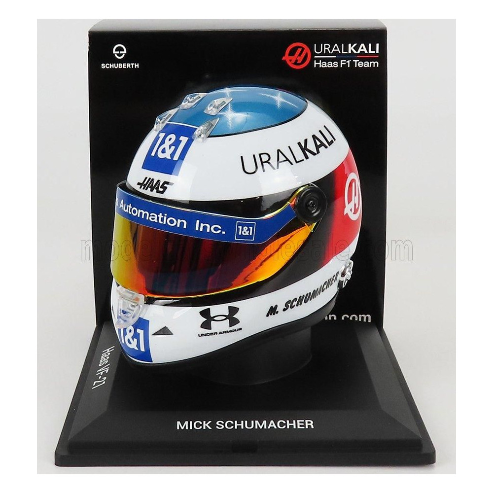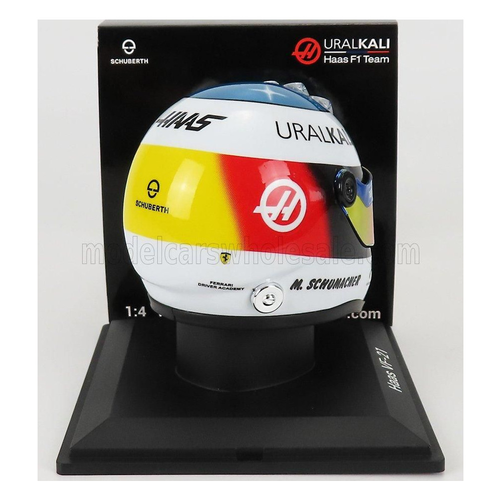 MINI SISAK SCHUBERTH SISAK F1 CASCO SISAK TEAM HAAS VF-21 BELGIAN GP SPA 2021 MICK SCHUMACHER - FEHÉR KÉK PIROS SÁRGA 1/4