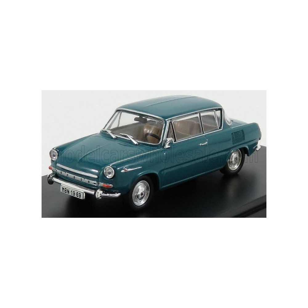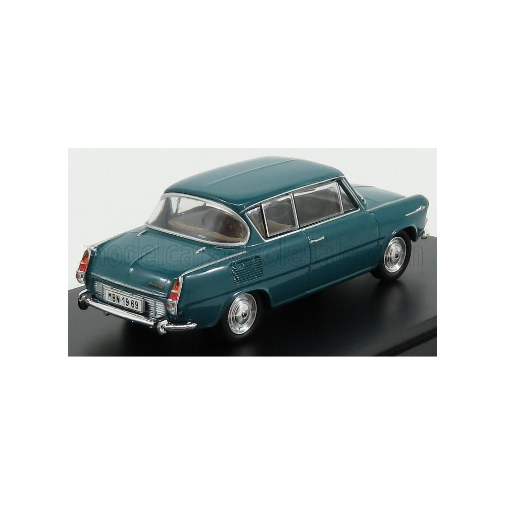 A ABREX ŠKODA 1100 MBX 2-DOOR 1969 - BLUE GREEN 1/43 modellautó egy remek választás minden autómodell gyűjtő számára, aki értékeli az aprólékos részleteket és a minőségi kidolgozást. Ez az 1:43 méretarányú mása az eredeti 1969-es Škoda 1100 MBX-nek.