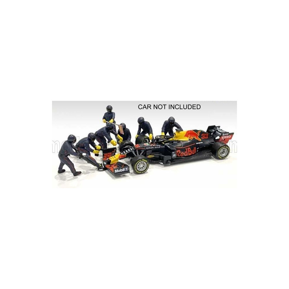 AMERICAN DIORAMA FIGURES F1 SET 1 2020 - DIORAMA PIT-STOP SET 7 X MECCANICI - MECHANIKUSOK - DEKÁLOKKAL - MATT KÉK PIROS 1/43