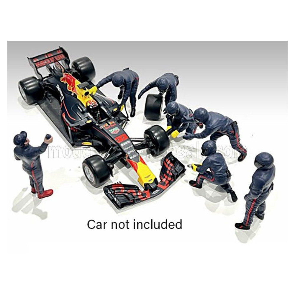 AMERIKAI DIORÁMA FIGURÁK F1 SZETT 2 2022 - DIORÁMA BOXUTCA SZETT 7 X MECCANICI - MECHANIKUSOK - MATTA KÉK PIROS 1/43