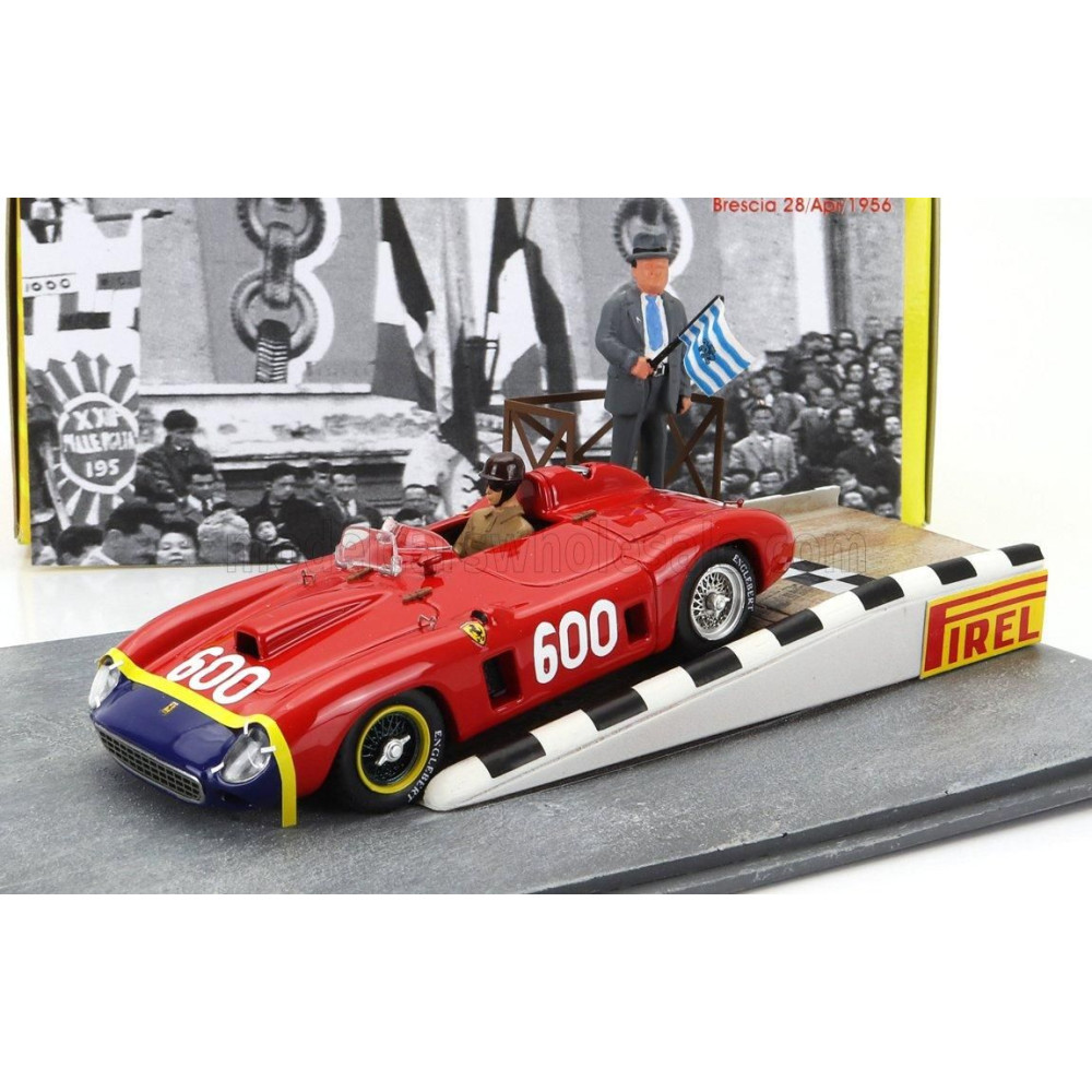 ART MODEL FERRARI DIORAMA - 290MM SPIDER s/n0626 N 600 MILLE MIGLIA 1956 JUAN MANUEL FANGIO - VÖRÖS KÉK SÁRGA 1/43