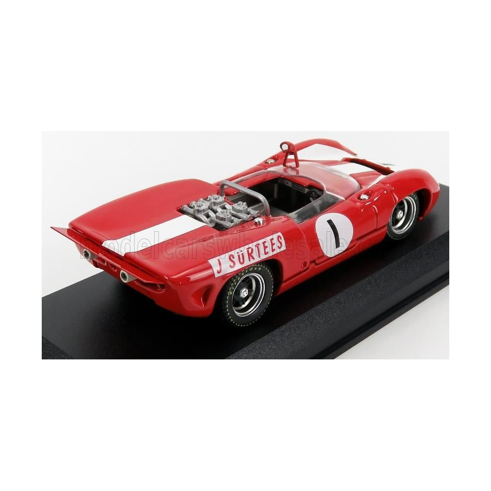 LEGJOBB MODELL LOLA T70 MKII SPIDER N 1 GYŐZTES MÁRKÁK HATCH GUARD TROPHY 1966 J.SURTEES - PIROS FEHÉR 1/43