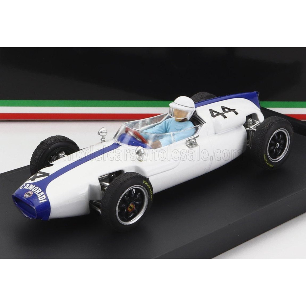 BRUMM COOPER F1 T56 N 44 BELGIUM GP 1961 M.GREGORY - SOFŐR FIGURÁVAL - FEHÉR KÉK 1/43