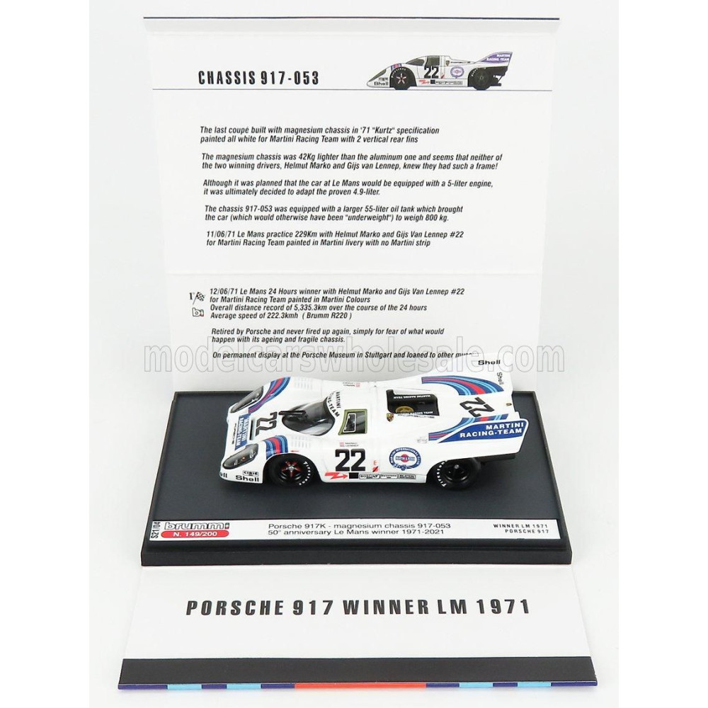 BRUMM PROM PORSCHE 917K 4.9L TEAM MARTINI RACING N 22 WINNER 24h LE MANS 1971 HELMUT MARKO - GIJS VAN LENNEP - FEHÉR KÉK VÖRÖS 1