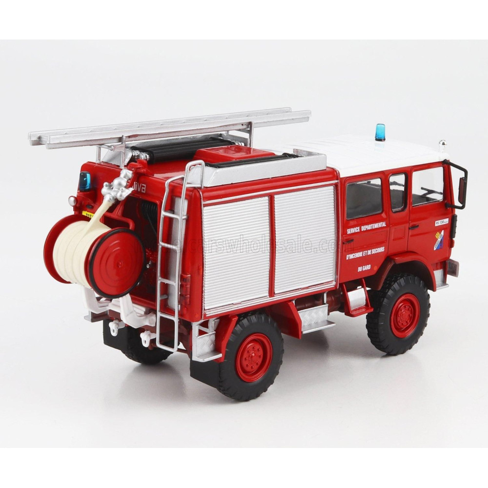 EDICOLA RENAULT 95.130 4x4 FPT DOUBLE CABINE TANKER TRUCK SAPEURS POMPIERS 1992 - VÖRÖS FEHÉR SZILVER 1/43