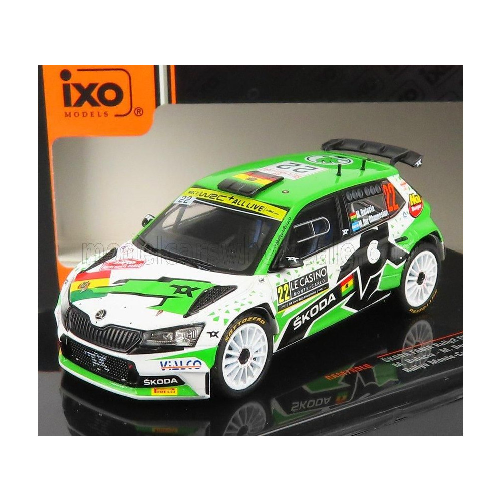 IXO MODELS ŠKODA FABIA RALLY2 EVO N 22 RALLY MONTECARLO 2021 M.WILKISON - M.DER OHANNESIAN - FEHÉR ZÖLD FEKETE 1/43