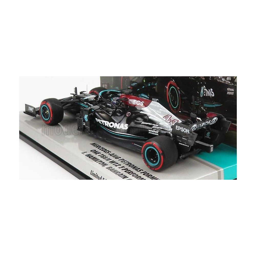 MINICHAMPS MERCEDES GP F1 W12 MERCEDES M12 EQ POWER+ TEAM AMG PETRONAS MOTORSPORT FORMULA ONE N 44 GYŐZTES BAHRAIN GP 2021 LEWIS