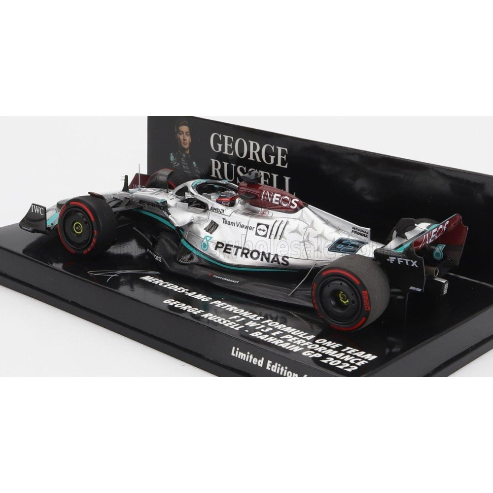 MINICHAMPS MERCEDES GP F1 W13E TEAM MERCEDES-AMG PETRONAS F1 N 63 4. BAHRAIN GP 2022 GEORGE RUSSEL - SILVER GREEN 1/43