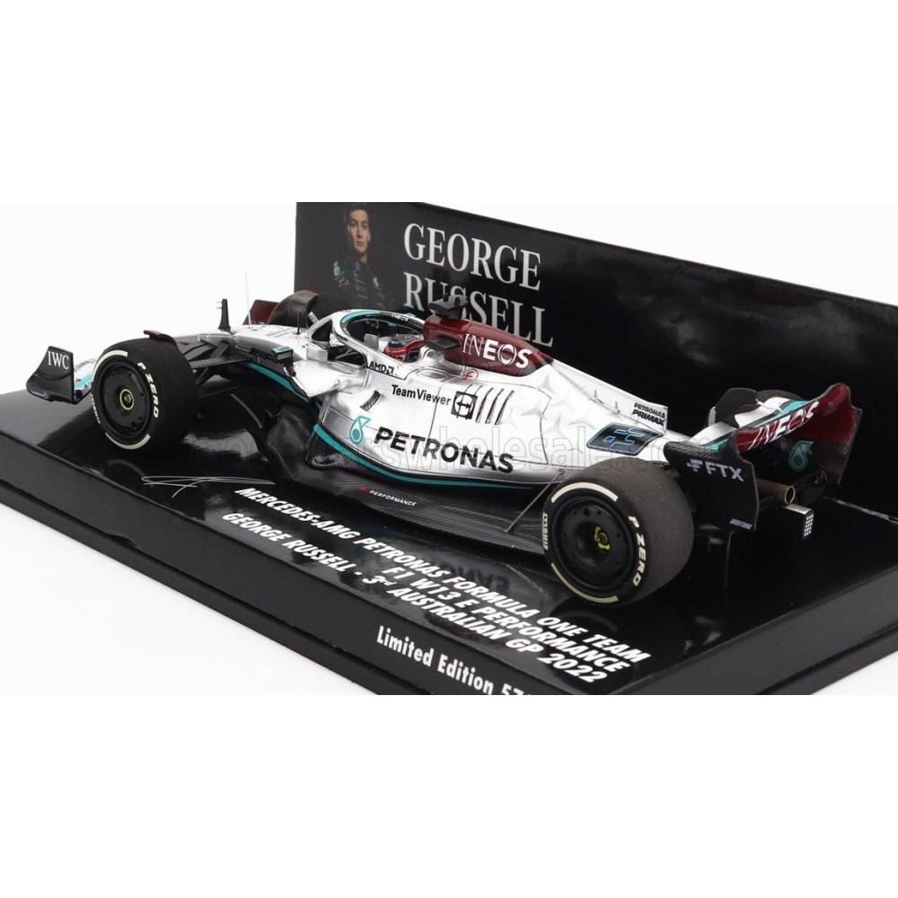MINICHAMPS MERCEDES GP F1 W13E TEAM MERCEDES-AMG PETRONAS F1 N 63 3rd AUSTRALIAN GP 2022 GEORGE RUSSEL - SILVER GREEN 1/43