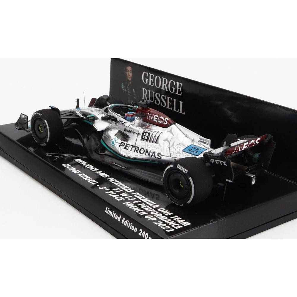 MINICHAMPS MERCEDES GP F1 W13E TEAM MERCEDES-AMG PETRONAS F1 N 63 3rd FRANCE GP 2022 GEORGE RUSSEL - SILVER GREEN 1/43