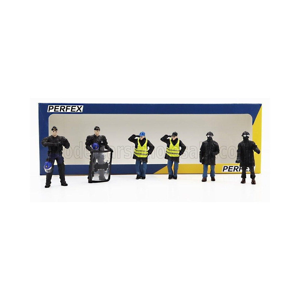 PERFEX FIGURÁK KÉSZLET 6X POLICE GENDARMES & MANIFESTANTS GILETS JAUNES YELLOW PARIS - FEKETE KÉK SÁRGA 1/43