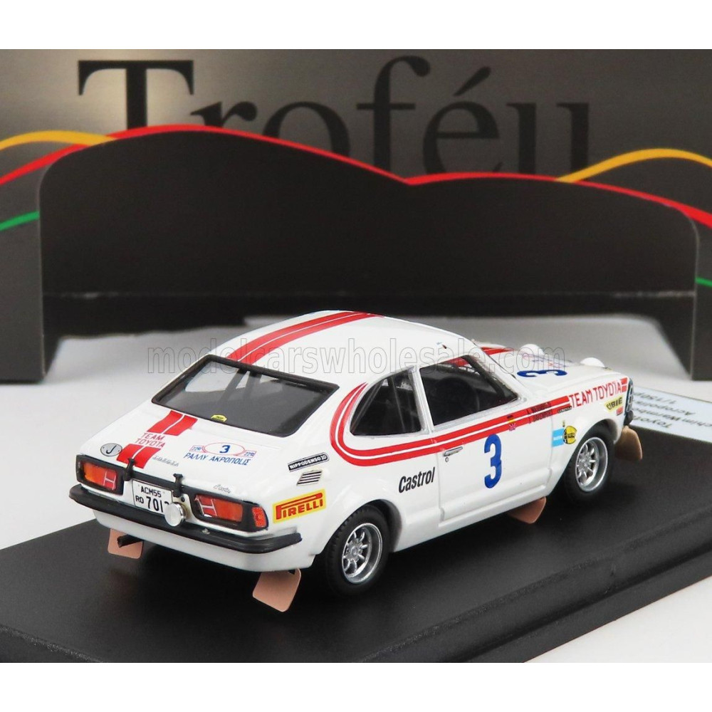 TROFEU TOYOTA COROLLA LEVIN (éjszakai változat) N 3 RALLY ACROPOLIS 1975 A.WARMBOLD - J.DAVENPORT - FEHÉR VÖRÖS 1/43
